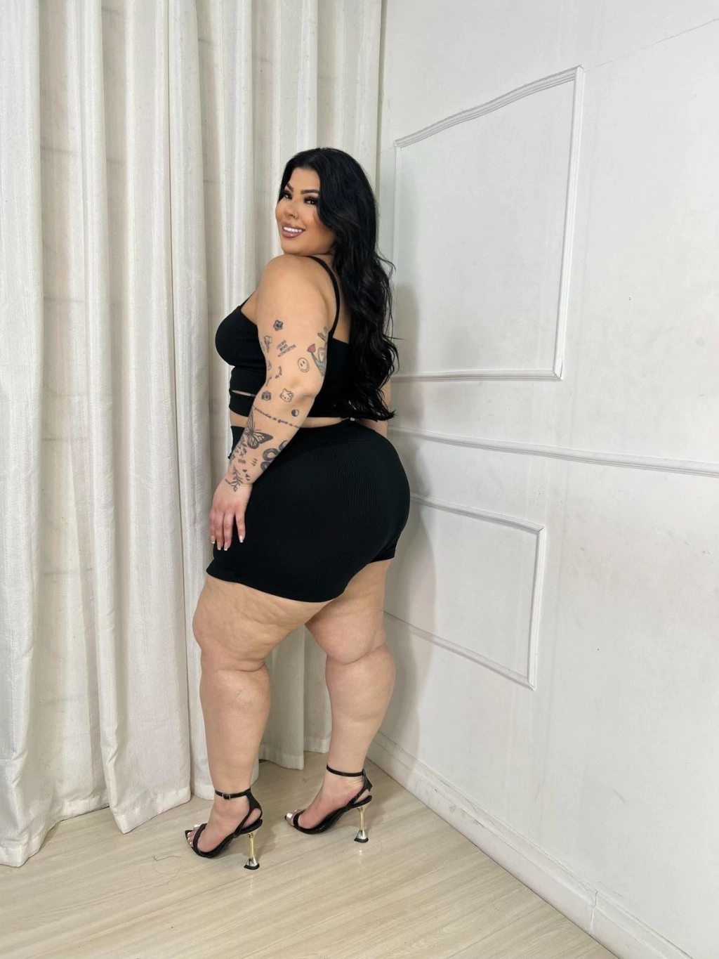 Produzido em Anarruga canelado, um tecido que estica muito e não possui transparência, o conjunto oferece liberdade de movimento e segurança para que você se sinta confiante em qualquer ocasião.